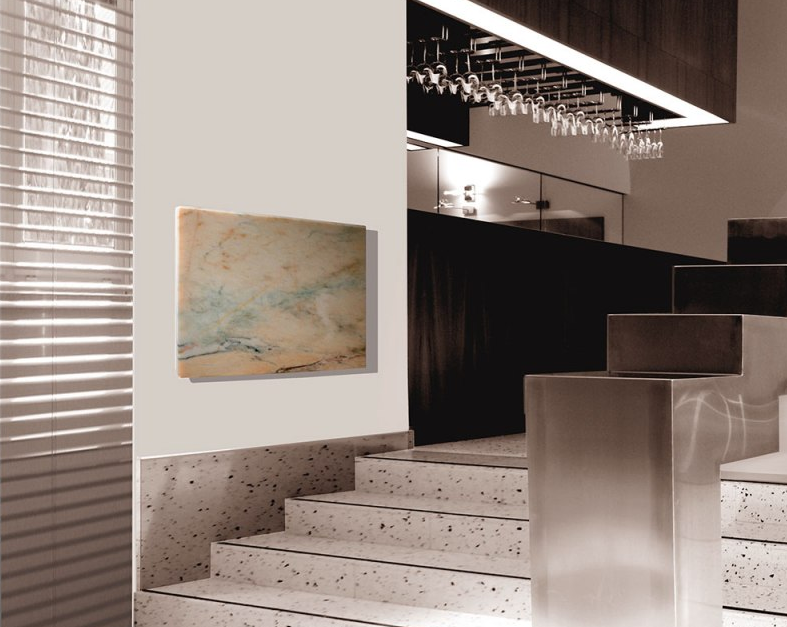 El panel está hecho de una placa maciza de mármol pulido de 3 cm, dispone del elemento calefactor, termóstato regulador y cable de alimentación. El panel está destinado a una instalación fija sobre la pared, el cable de alimentación se conecta a la caja de instalación; posible elección de varios tipos de mármol. Como el mármol es un material natural, el color y la estructura pueden diferir ligeramente. Los paneles se pueden instalar a lo ancho y a lo alto, los soportes forman parte del envase. El funcionamiento de los paneles calefactores debería manejarse mediante una regulación adecuada.